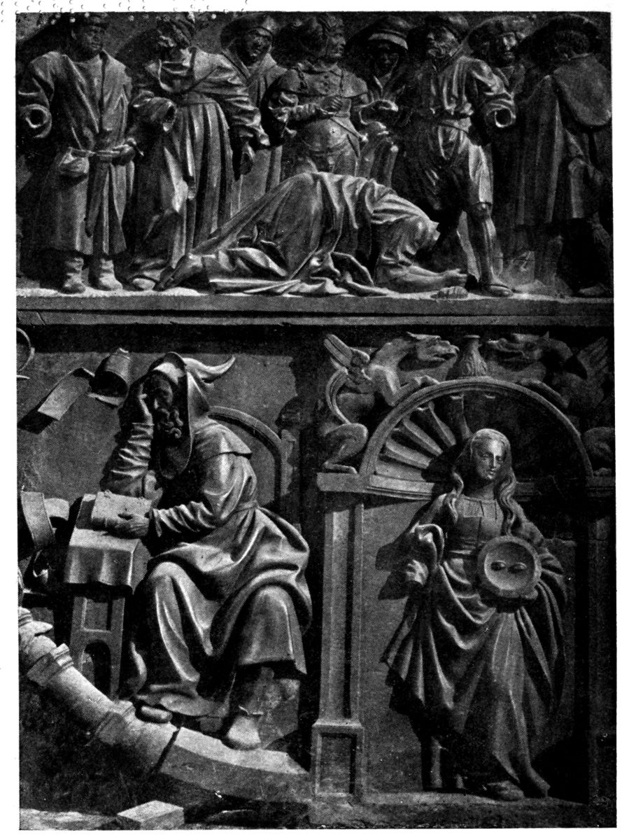 Few artists on canvas, or in stone or wood, have so well expressed the evil passions of the mob as the unknown sculptor of Christ bearing the Cross. The multitude is composed, of course, of local types—of those ferocious bravos and audacious picaros who abounded in Spain at that time, and whose ugliest characteristics are here caught and rendered with astonishing realism. A different genius is exemplified by the beautiful statues in bronze gilt of the Duke and Duchess of Lerma, which once decorated their tombs at San Pablo. They were begun by an Italian, Pompeio Leoni, but completed, it is believed, by another hand.