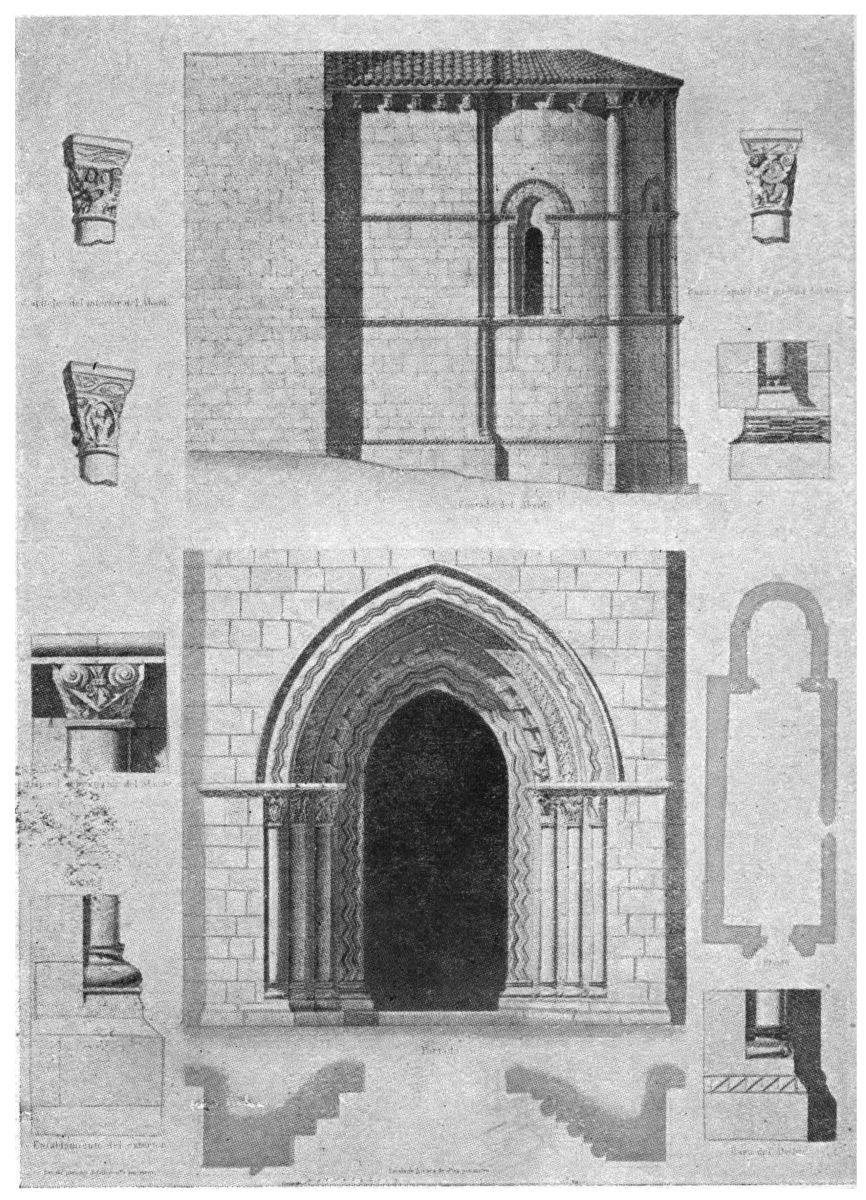 PLAN, PRINCIPAL ENTRANCE, AND DETAILS OF THE CHURCH OF SAN JUAN DE AMANDI (CONCEJO DE VILLAVICIOSA)