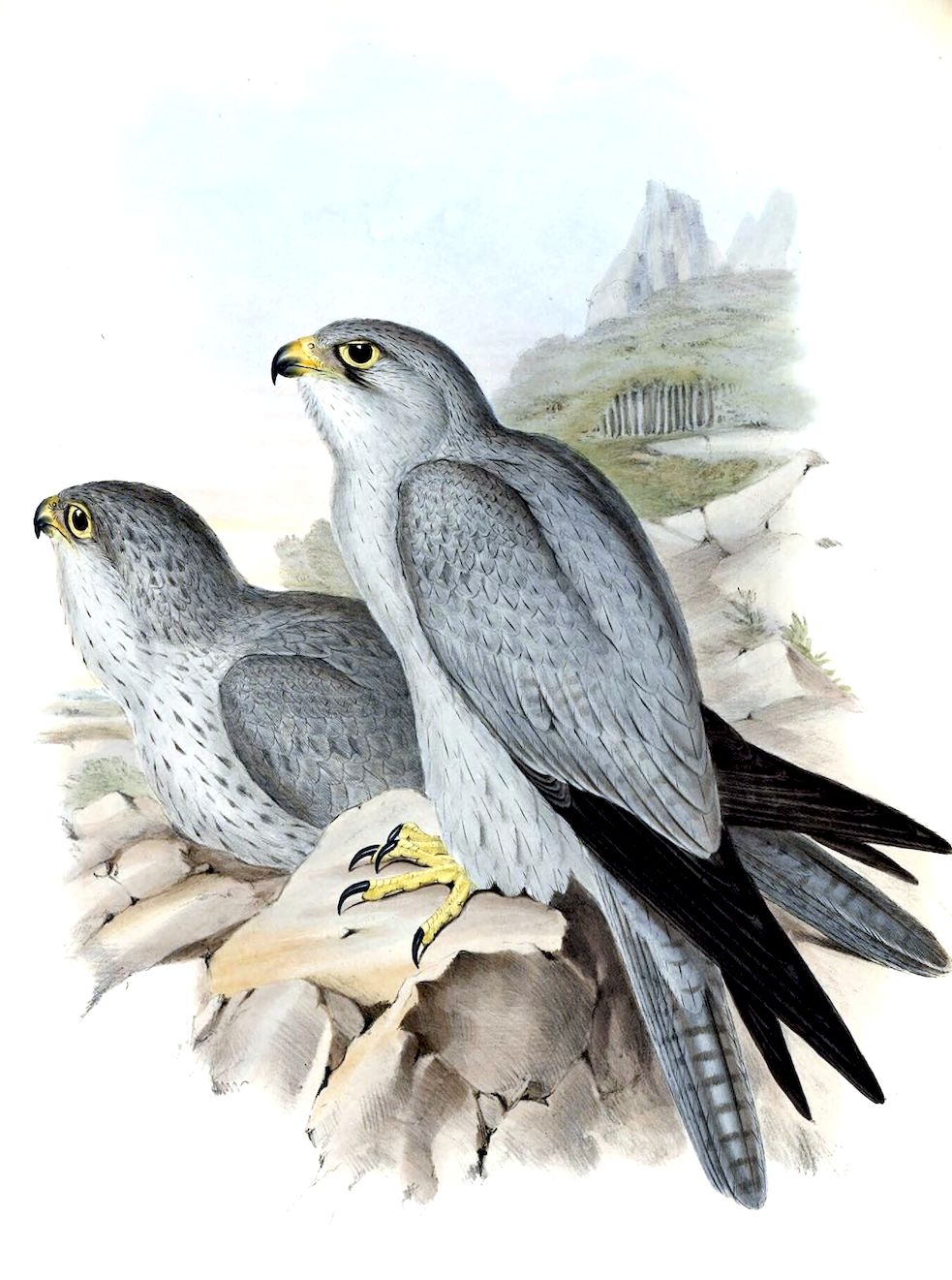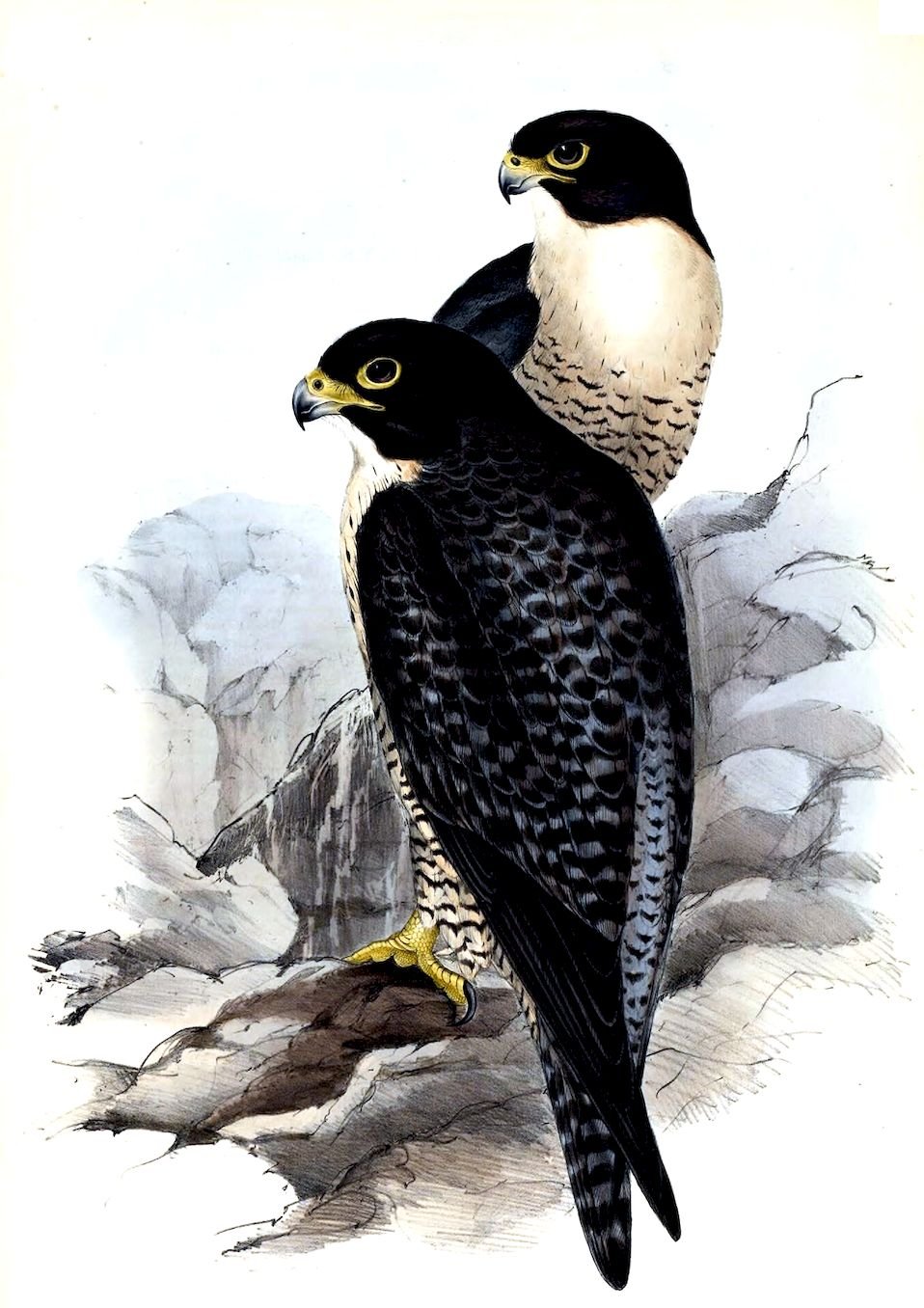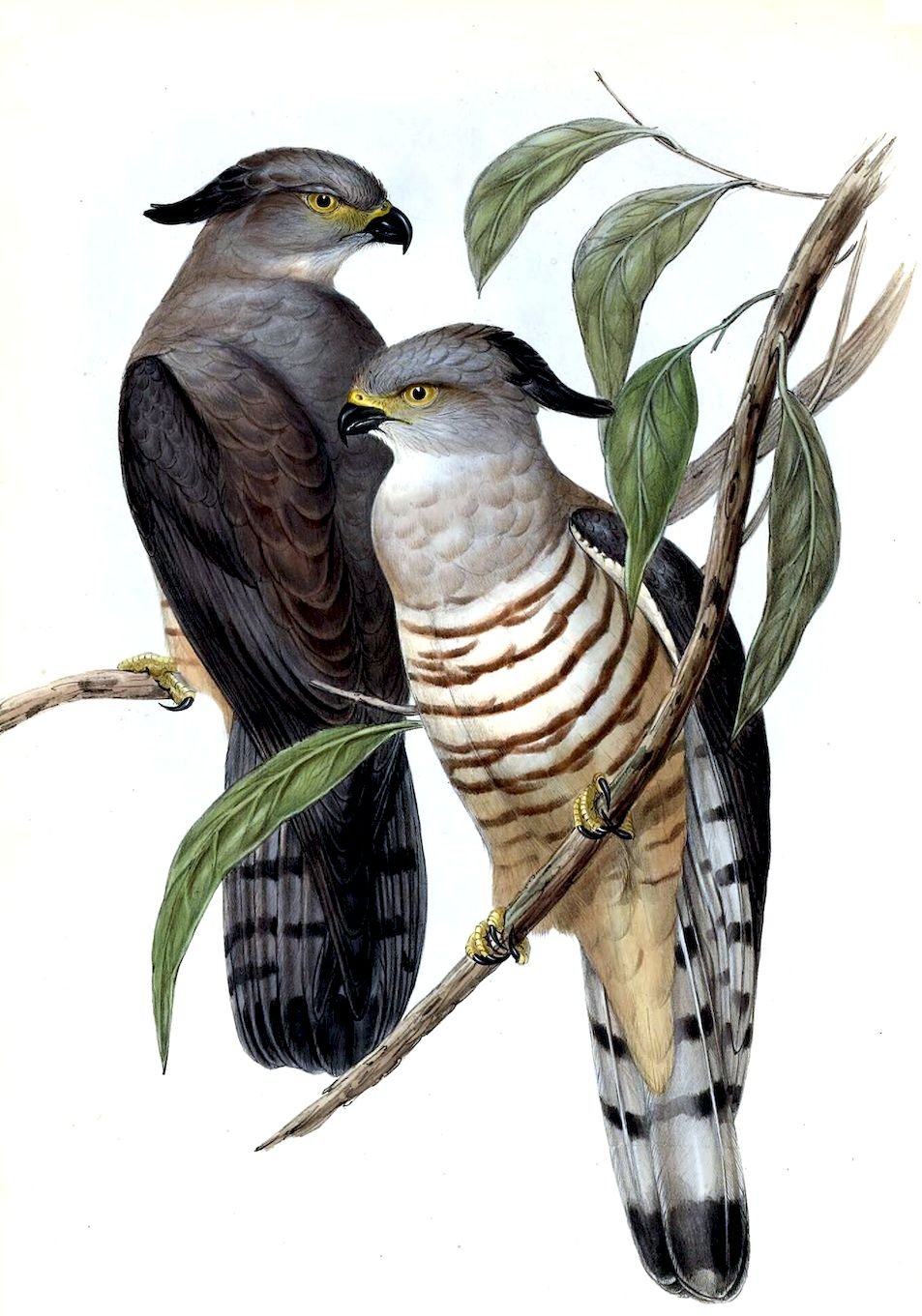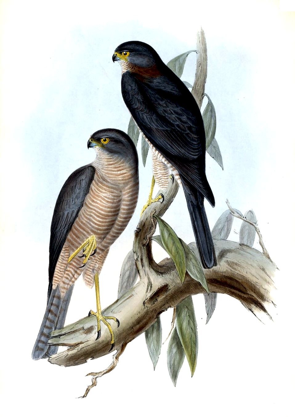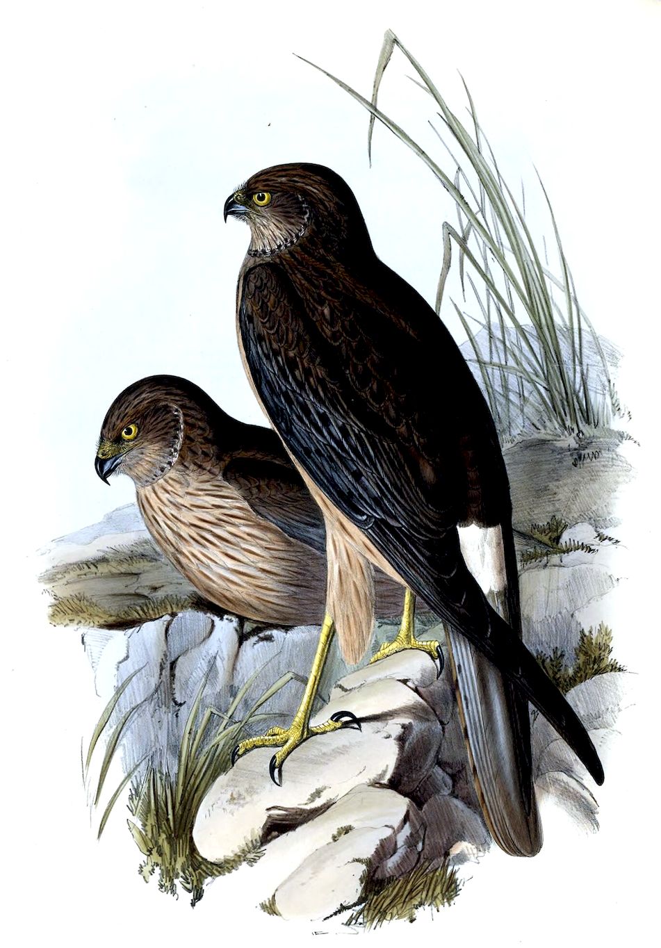 The sexes offer but little difference in the colouring of their plumage, but the female is the largest in size. A great diversity is found to exist in the colouring of the irides; some being yellowish white, others greenish yellow, and others brown.