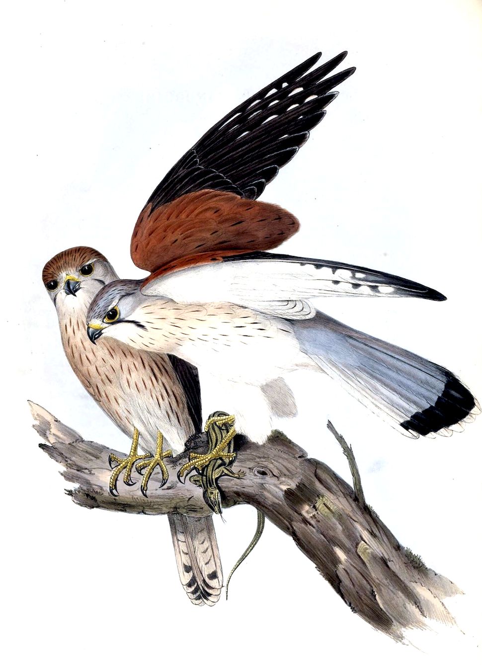 It will be seen, on reference to the synonyms, that I described this bird in the “Proceedings of the Zoological Society,” and figured it in my “Synopsis” under the specific name of fortis; but I have since ascertained, through the kindness of the Earl of Derby in affording me the use and inspection of the three volumes of drawings of Australian Birds, formerly in the possession of the late A. B. Lambert, Esq., that it is identical with the Winking Falcon of Latham; any seeming inattention on my part in describing an apparently new Owl without consulting that author will I hope be readily excused, as few ornithologists would think of looking for the description of this bird under the genus Falco.