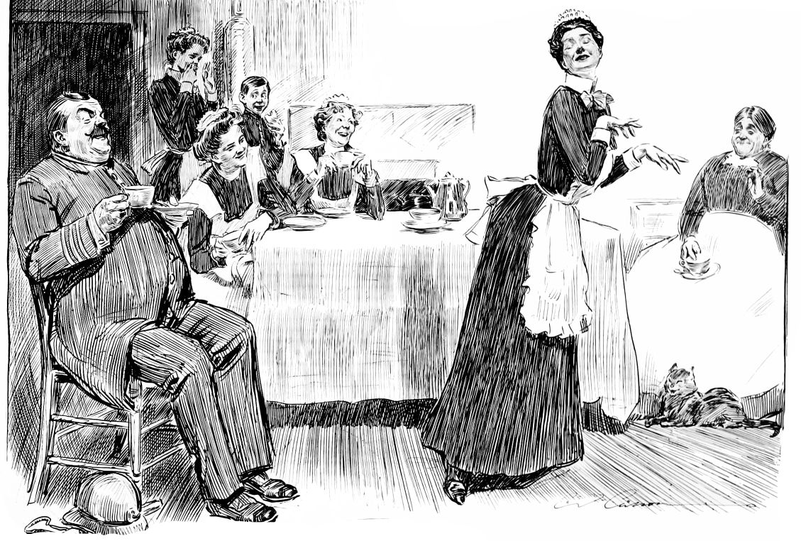 Mr. Meeker doesn’t object so much to his wife’s entertainments as he does to the way she uses his room for the gentlemen’s things.
