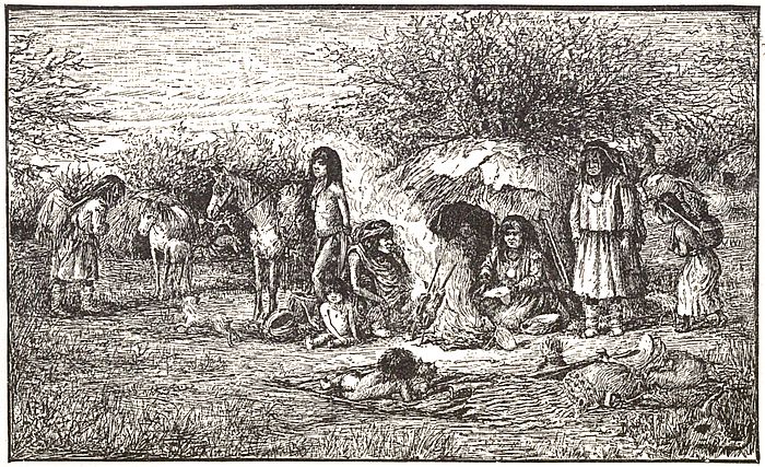 Animation and bustle prevailed everywhere; small fires were burning in secluded nooks, and upon the bright embers the scouts baked quantities of bread to be carried with them. Some ground coffee on flat stones; others examined their weapons critically and cleaned their cartridges. Those whose moccasins needed repair sewed and patched them, while the more cleanly and more religious indulged in the sweat-bath, which has a semi-sacred character on such occasions.