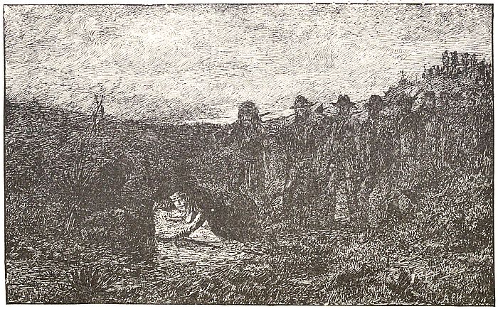 But all interest was withdrawn from this spectacle and converged upon a file of five wretched, broken-down Mexican women, one of whom bore a nursing baby, who had come within the boundaries of our camp and stood in mute terror, wonder, joy, and hope, unable to realize that they were free. They were a party of captives seized by “Hieronymo” in his last raid into Chihuahua. When washed, rested, and fed a small amount of food, they told a long, rambling story, which is here condensed: They were the wives of Mexican soldiers captured near one of the stations of the Mexican Central Railway just two weeks previously. Originally[92] there had been six in the party, but “Hieronymo” had sent back the oldest and feeblest with a letter to the Mexican general, saying that he wanted to make peace with the whites, and would do so, provided the Mexicans returned the Apache women and children held prisoners by them; if they refused, he would steal all the Mexican women and children he could lay hands on, and keep them as hostages, and would continue the war until he had made Sonora and Chihuahua a desert. The women went on to say that the greatest terror prevailed in Chihuahua at the mere mention of the name of “Hieronymo,” whom the peasantry believed to be the devil, sent to punish them for their sins.