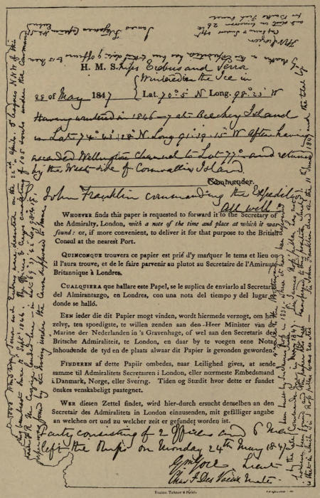 | Sledging parties of Sir Edward Belcher’s squadron.—Desertion of the ships.—Return to England.—Story of the Resolute.—Traces of Sir John Franklin discovered by Dr. Rae.—Anderson’s journey.—The voyage of the Fox under Commander M’Clintock.—Sledge journeys.—Record and relics of Franklin’s expedition.—Fox returns to England | 174 |