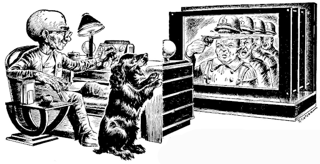 Nodding, Pupsie moved close to the machine, switched it on and began tuning radarlike by sniffing and twisting the dials. Almost at once his eyes lighted and his tongue lolled out and his muscles stiffened for action. The blonde woman held her breath, expecting to view the murderer.