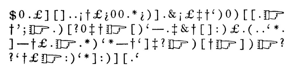 In E.A. Poe’s article A FEW WORDS ON SECRET WRITING, a page image of a cryptograph has been used for the ebook formats other than plain text, rather than a transcription, due to limitations of modern fonts and devices. It is interesting to use that illustration image as indicator of the problems which could occur with old physical typesetting methods. Looking at the image of the cryptograph we can see the first 6 characters of the first line are $0.£][ which according to the list of characters above the cryptograph would be "wm eust" but were meant to represent the words "we must". Unfortunately the typesetter made an error and transposed the e (.) and m (0) so the first characters should have been printed as $.0£][ to be a correct representation of the paragraph.