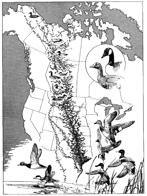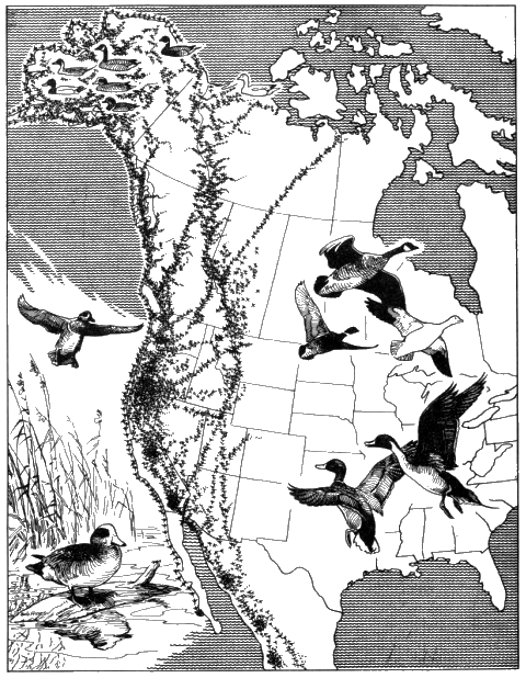 When the birds that have nested in our dooryards and those that have frequented the neighboring woods, hills, and marshes leave us in the fall, the question naturally comes to mind: Where do they go? This, however, is only one small part of the question as we also wonder: Will the same ones return next spring to their former haunts? What dangers will they face on their round-trip flight and while in their winter homes? These and other questions on the migratory habits of most species of Northern Hemisphere birds puzzle all who are interested in them, whether it be the farmer who profits by their tireless warfare against the weed and insect pests of his crops, the bird student who enjoys an abundance and variety of feathered inhabitants about him, or the hunter who wants a continuation from year to year of the sport of wildfowling. Lack of information on the subject may mean the loss of an important resource by unconsciously letting it slip from us, as ignorance might be responsible for inadequate legal protection for such species as might urgently need it. More general knowledge on the subject will aid in the perpetuation of the various migrants, the seasonal habitats of some of which are in grave danger from man's utilization, sometimes unwisely, of the marsh, water and other areas that were formerly homes for birds.