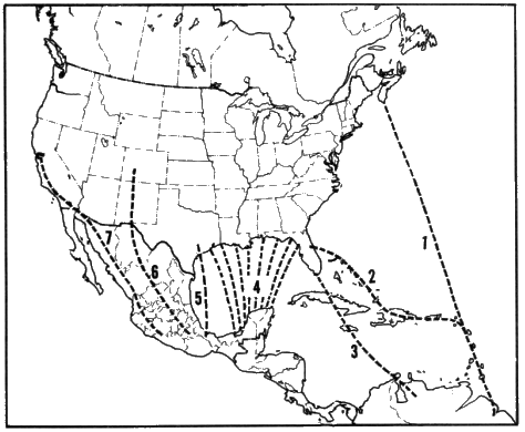 For more than half a century the Fish and Wildlife Service and its predecessor, the Biological Survey, have been collecting data on the interesting and important phenomenon of the migration of North American birds. The field men of the Service have gathered information concerning the distribution and seasonal movements of the -3- different species in many extended areas, from the Arctic coast south to the pampas of Argentina. Supplementing these investigations is the work of hundreds of volunteer ornithologists and bird students throughout the United States and Canada, who each year, spring and fall, forward to the Service reports on the migrations as observed in their respective localities. Added to the mass of data thus assembled is a rapidly growing recovery file of marked individuals. These data, together with other carded records gleaned by the Fish and Wildlife Service from a vast literature, constitute a series of files that now contain well over 3,000,000 entries, easily the greatest existing accumulation of information pertaining to the distribution and movements of North American birds. Not only do the facts thus assembled form the basis of regulatory action for the protection of the birds, but they also make it possible to publish scientific accounts of the ranges and migrations of the different species. They furnish the basis of this bulletin.