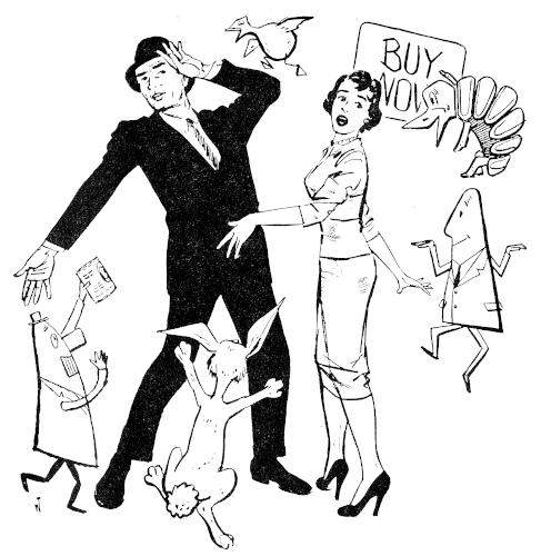 For the first time in his life he felt desperate. A cool head and a habit of never being wrong had got him where he was—founder and top banana of Full-Projection, sole owner of three TV networks using the revolutionary 3-D devices perfected by Otto Kahler and patented by Archy. In the present emergency, he tried to keep his head still cool and continue to never be wrong.