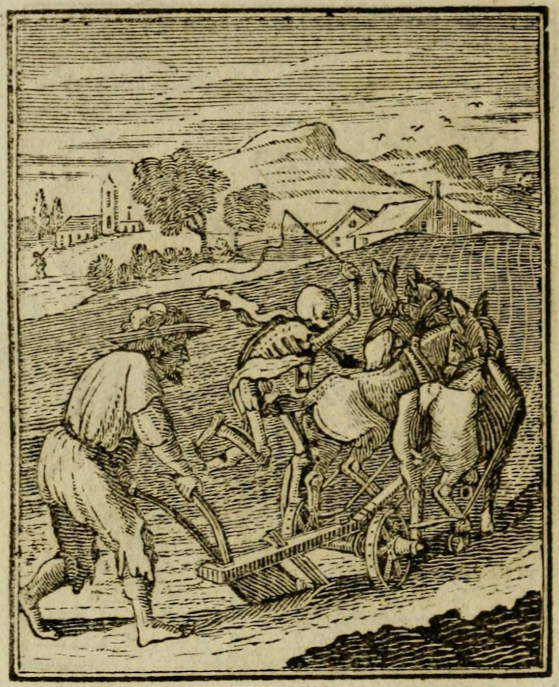 The Work here presented to the Reader is a Copy, with a small Variation noticed hereafter, as to the Cuts, and a Translation, as to the Letter Press, of one well known to the Curious by the Title of Imagines Mortis, or The Images of Death; which is reported to be in reality indebted for its Existence to an Event that Boccace did but feign as the Occasion of writing his Decameron; I mean the Calamity of a Plague: And its History is as follows.