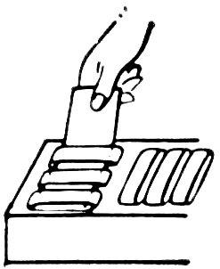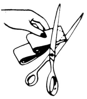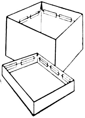 STAY-PRETTY WRAP. It still looks pretty when box is opened. Just cover lid and base separately. Cut paper to cover lid, plus 1 inch extra on each side. Fold edges inside lid and fasten with tape (a). Cover base same as lid. Idea shown: Arrange thin paper strips in “x’s” on table. Press lengths of tape over “x’s” to pick them up and tape to box.