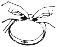 (a) Cut 2 to 3 yards of ribbon, depending on size of bow you wish. Form a circle and tape end in place. Roll up ribbon.