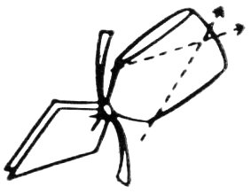 SHOOTING STAR BOW. A two-tone beauty! Make the pre-fab “Magic Bow”, starting by rolling together equal lengths of “Sasheen” in contrasting colors. Make angle cuts at each end (b). Pull out loops as in “Magic Bow”.