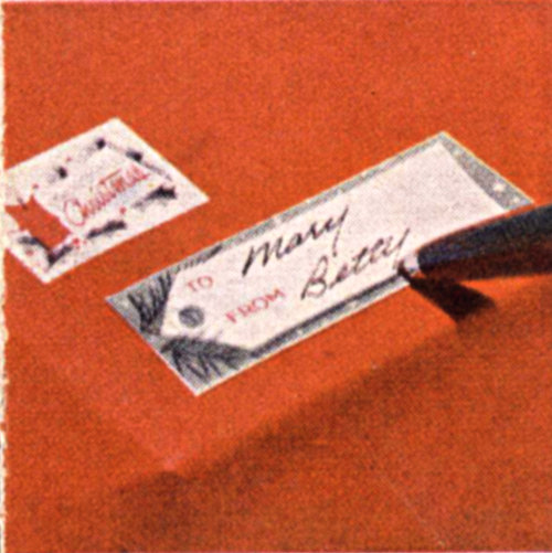 WEATHERPROOF YOUR MAILING LABELS. Smart and simple trick when mailing gifts. Protect addresses from ink-smearing snow or rain: cover them completely with “Scotch” brand Cellophane Tape to help assure safe arrivals.
