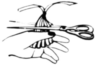 (b) Press circle together and fold in half. Start from outside edge and cut off corners, leaving ⅛″ center.