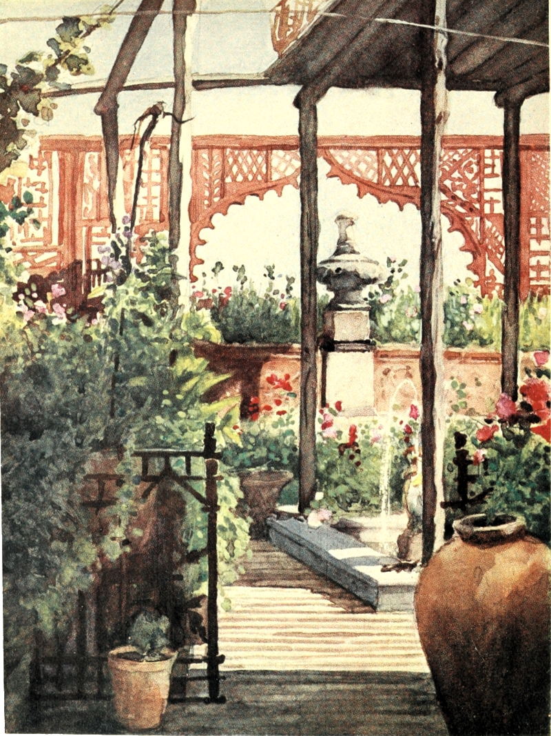 THE ROOF GARDEN AND POMPEIAN FOUNTAIN AT 32 ADDISON MANSIONS.