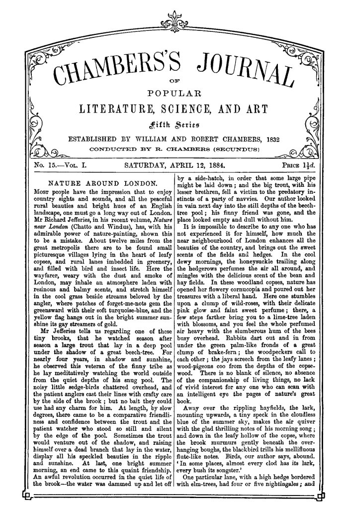Title: Chambers's Journal of Popular Literature, Science, and Art, Fifth Series, No. 15, Vol. I, April 12, 1884
