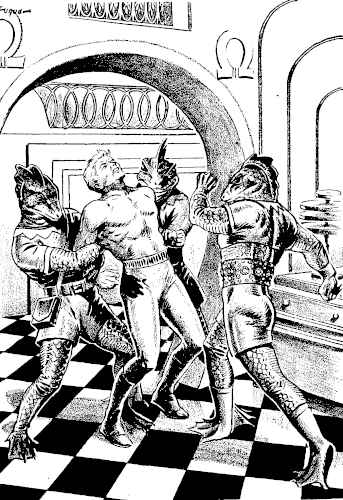 Again Shane lunged. But this time the Venusian did not dart away. Instead, he ducked beneath the Earthman's outstretched arms and hurled his whole weight into Shane's middle.