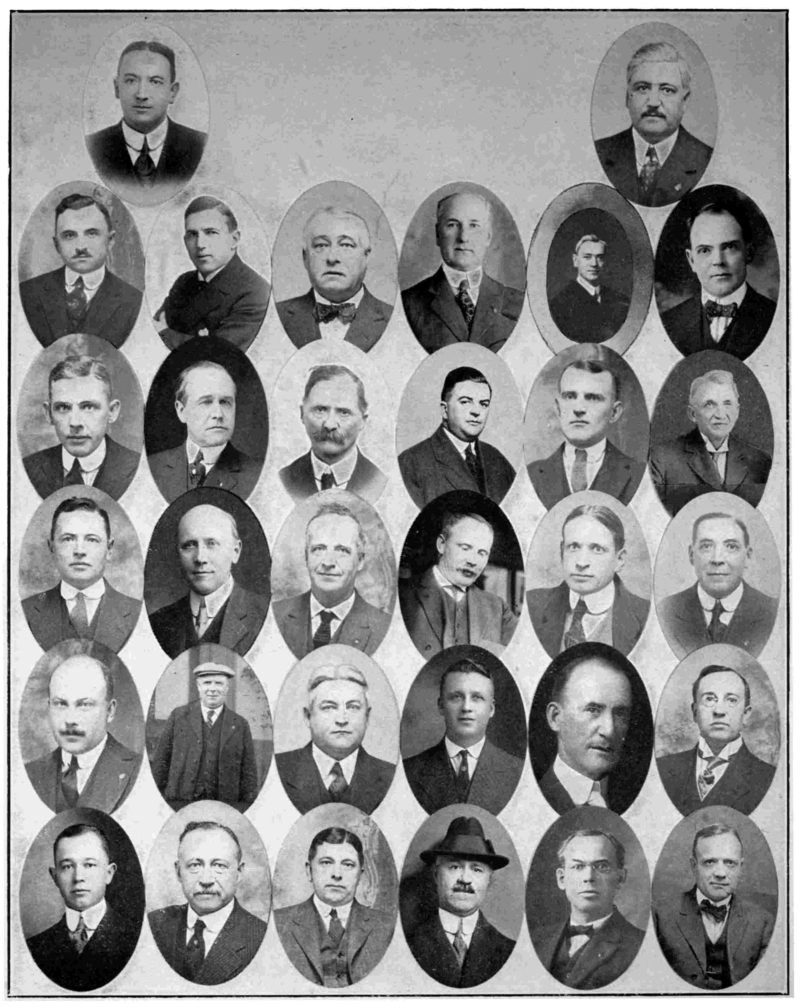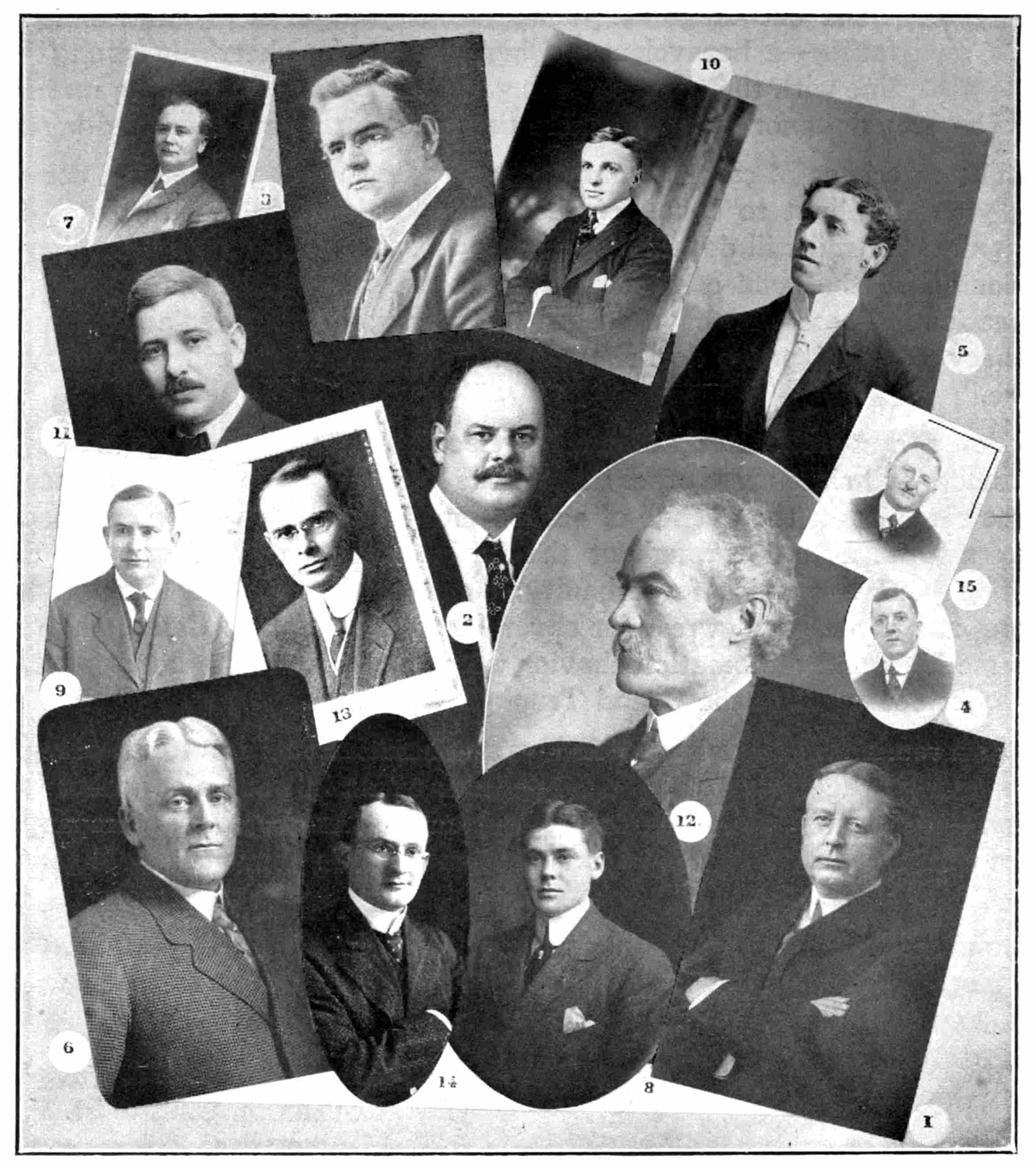 Lower Row—J. Anderson, C.P. & T.A., Hamilton; G. W. Norman, T.P.A., Chicago; D. P. Drewery, T.P.A., Buffalo; R. McC. Smith, C.P. & T.A., Detroit; J. E. Crossley, T.P.A., Montreal; C. E. Horning, D.P.A., Toronto; F. W. Wherrett, T.P.A., Detroit; W. S. Cookson, Gen’ Pass’r Agent, Montreal; G. N. Wilson, T.P.A., Kansas City; J. H. Corcoran, T.P.A., Moncton, N.B.; C. E. Jenney, G.A.P.D., Vancouver, B.C., and H. R. Charlton, Gen’l Advertising Agent.