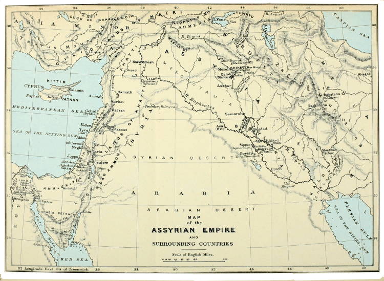 [Authorities and Sources:—“Assyrian Discoveries.” By George Smith. “The Chaldean Genesis.” By George Smith. “Ancient History from the Monuments: Assyria.” By George Smith. “Ancient History from the Monuments: Babylonia.” By Rev. Dr A. H. Sayce. “Nineveh and its Remains.” H. A. Layard. “Nineveh and Persepolis.” W. S. W. Vaux. “Guide to the Kouyunjik Gallery.” British Museum. “The Story of the Nations: Assyria.” By Zénaïde A. Ragozin. “The Story of the Nations: Babylonia.” Zénaïde A. Ragozin. “Hibbert Lectures.” Dr A. H. Sayce. “Records of the Past.” “Transactions of the Society of Biblical Archæology.” Smith’s “Dictionary of the Bible.” “From Under the Dust of Ages.” St Chad Boscawen.]