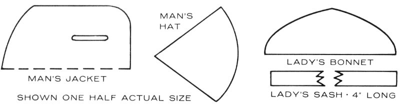 MAN’S JACKET • MAN’S HAT • LADY’S BONNET • LADY’S SASH—4′ LONG