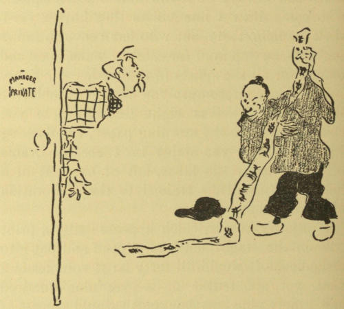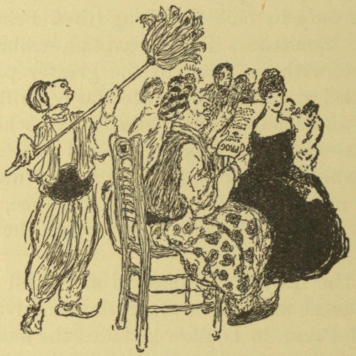 It would be easy to follow the parallel and to show how from the ancient jester was evolved the modern comedian; but of the “true-blue” jesters of to-day—the men who evolve fun from their own inner consciousness—I am compelled to quote: “There are only a few of us left.” Of these “entertainers,” as they are called in modern parlance, I shall let out a few of the secrets which admit them to the drawing-room[30] of England and America to put a frosting, as it were, on proceedings that otherwise might be too sweet, perhaps too heavy. The modern jester comes to the aid of the queen of the drawing-room just as the ancient one did to the monarch of old, so he is still an honored guest at the table of royalty.