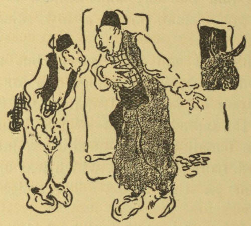 If you will run over to Europe you will find the Irish prototype of the Persian story-teller on the streets of Dublin and Limerick. Many a time I have seen him on the street corner telling the thrilling story of how O’Shamus was shot, or some similarly cheering tale—for fighting seems the funniest of fun to an Irishman. And just before first blood is drawn, the story-teller pauses to pass the hat, into which drop hard-earned[29] pennies that had been saved for something else. It is the old Persian act. The manner is the same, though the coat and hat are different, so I should not be surprised to learn that the Irish are direct descendants of the ancient Persians.