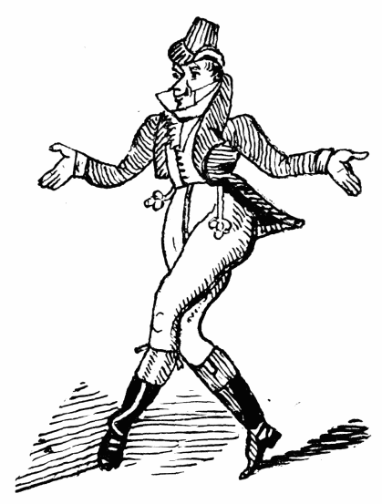 [71] A dandy of the first water in the time of the Regency. His vanity was superlative. He essayed to play Romeo, creating nothing but roars of laughter in the house. In the scene where Romeo dies, the audience applauded him ironically; but he took it in earnest, and, getting up, bowed, and died again, first of all carefully dusting the stage.