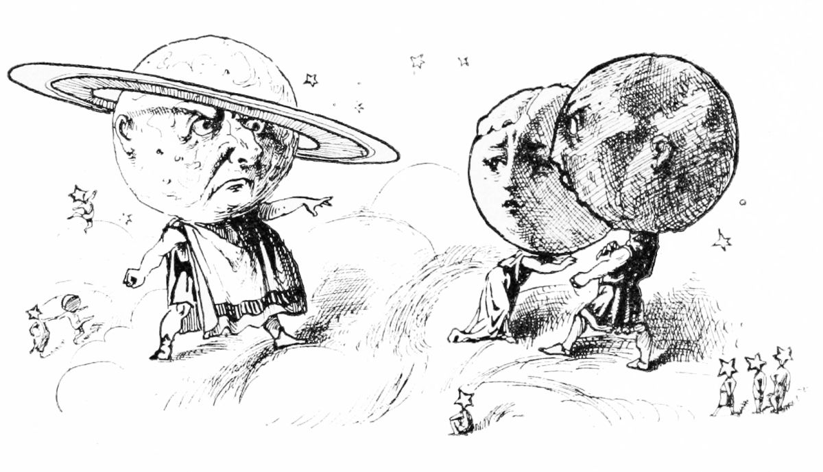 They had an ugly fight, tearing about the Heavens for hours, bumping into other Planets, and deranging the whole solar system.{7}