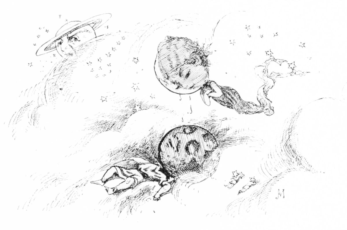 One summer’s night, about a million years ago, it happened that the Moon was pensive.{2}