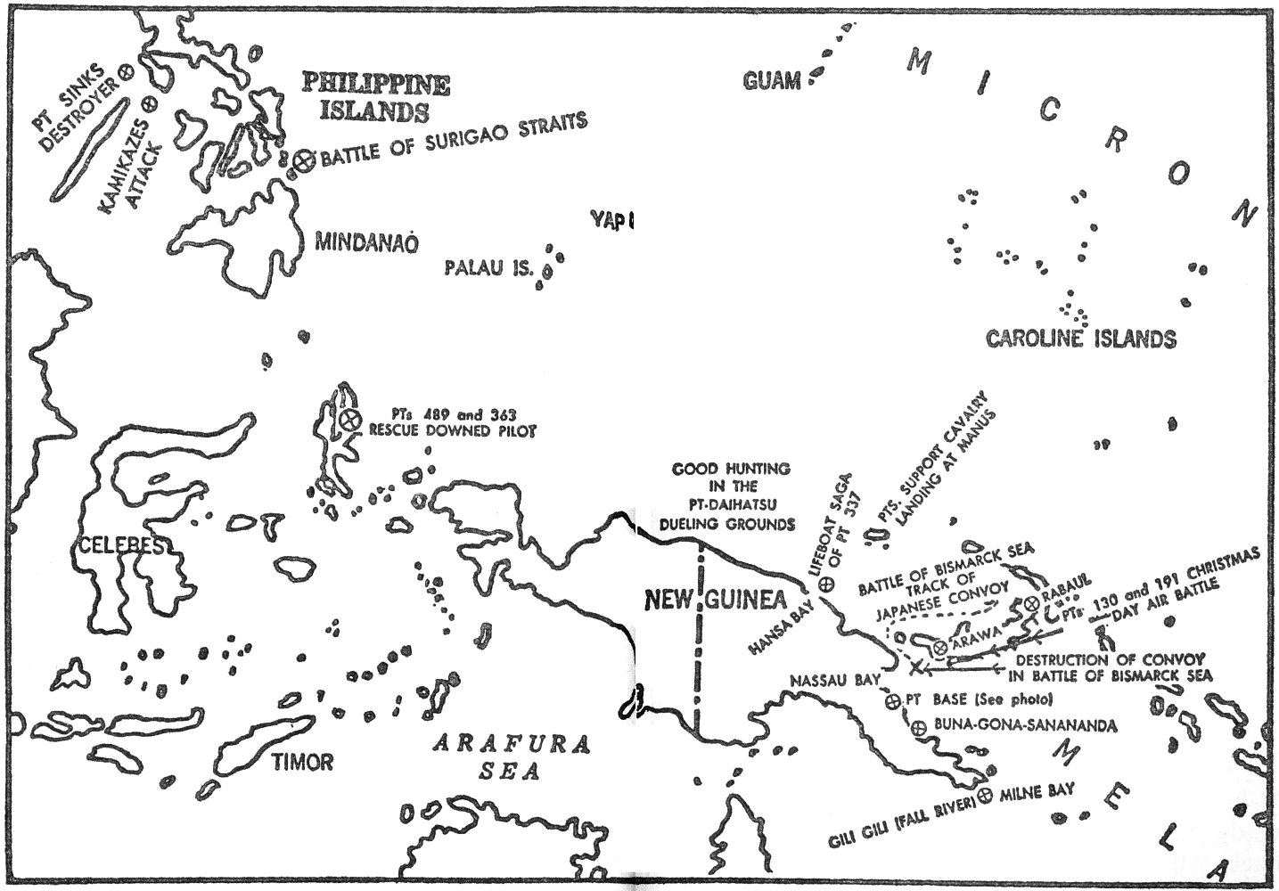 Historical material in this book comes from action reports, squadron histories, and other naval records on file at the historical records section in Arlington, Va. Most valuable was the comprehensive history of PT actions written by Commodore Robert Bulkley for the Navy. The Bulkley history was in manuscript form at the time I did research for this book. The broad outline of naval history comes mostly from the History of U. S. Naval Operations in World War II of Samuel Eliot Morison. I am grateful to several PT veterans for their generous contribution of diaries, letters, anecdotes, etc., which have been drawn on for human interest material. Among these kind correspondents are: James Cunningham of Shreveport, La., Roger Jones of Nassau, Bahama Islands, Lieut. Commander R. W. Brown of Scituate, Mass., Capt. Stanley Barnes of the War College, Carlisle Barracks, Pa., James Newberry of Memphis, Tenn., and Arthur Murray Preston, of Washington, D. C. The officers of Peter Tare Inc., a PT veterans organization, have been helpful.