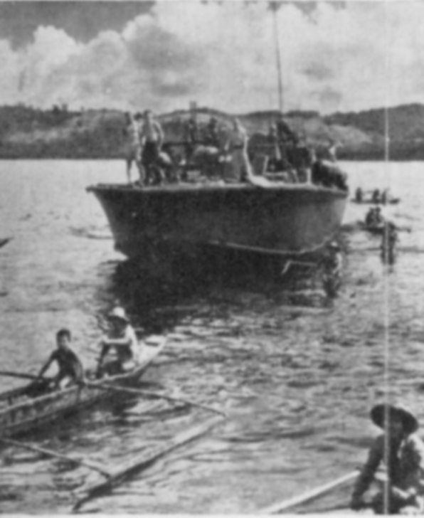 That night Lieut. Commander N. Burt Davis’ boats carried sealed orders from General MacArthur to a guerrilla hideout on the other side of Mindoro and delivered them to Lieut. Commander George F. Rowe, U. S. Navy liaison officer to the Mindoro Underground. The boats picked up eleven American pilots, who had been rescued and sheltered by the guerrillas, and brought them back to Mindoro.