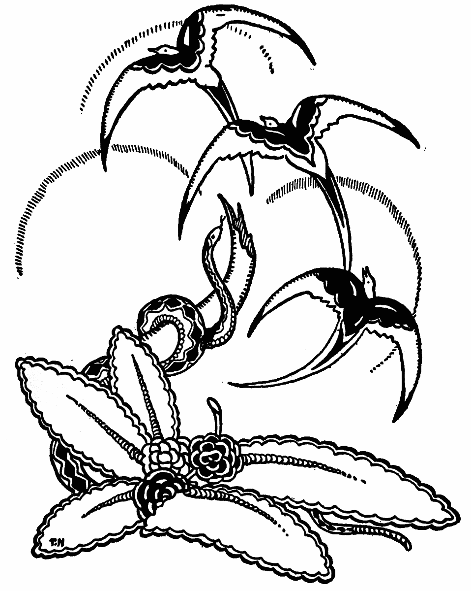 With a spasmodic flap of wings, the black body lifted itself a few feet from the building, then settled suddenly back. For a moment it hopped awkwardly about, as though the roof were red hot beneath its feet, then folded its wings, drew its nude head in upon its breast, and surveyed the court with its aloof, malevolent eyes.