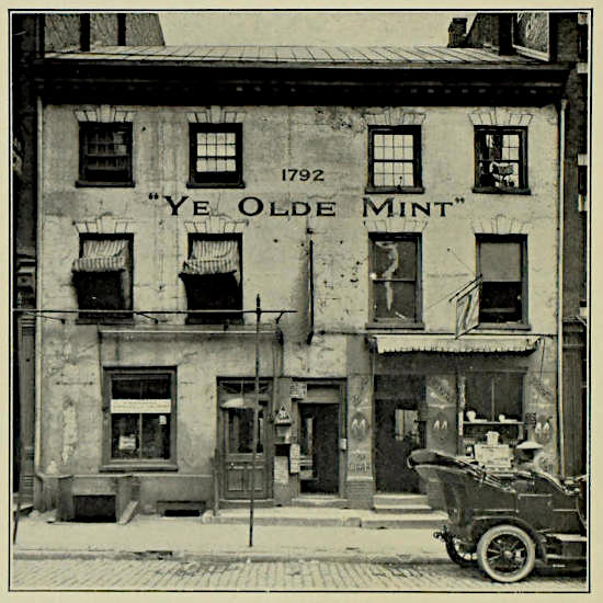 The great majority of the rare United States coins were made in buildings still standing at 37 and 39 North Seventh Street, Philadelphia, or, to be more exact, in the coinage building in the rear of these numbers. Until recently these buildings were unmarked, and the people of the neighborhood in a great many instances were unaware of the fact that for a period of forty (40) years all of the United States coins were made so near at hand. Those who daily walked past the buildings had nothing to direct their attention to them, and it is safe to say that not five hundred persons in Philadelphia could point out what at one time was one of the most important[4] buildings in the United States, as well as the first erected under authority of Congress for Federal purposes.