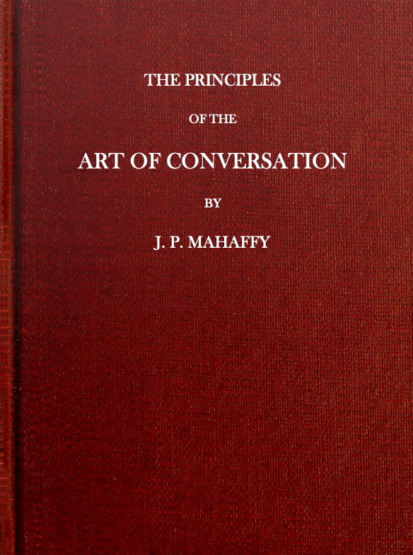 To assert that there is some such systematic analysis of conversation possible is to assert that it is an Art—a practical science like the art of reasoning called Logic, or the art of eloquence called Rhetoric. Now this runs counter to one of the strongest convictions of all intelligent men and women, that if anything in the world ought to be spontaneous it is conversation. How can a thing be defined by rules which consists in following the chances of the moment, drifting with the temper of the company, 5suiting the discourse to whatever subject may turn up? The instant any one is felt to be talking by rules all the charm of his society vanishes, and he becomes the worst of social culprits—a bore. For it is the natural easy flow of talk which is indeed the perfection of what we seek. Didactic teaching, humorous anecdotes, clever argument—these may take their part in social intercourse, but they are not its perfection. To take up what others say in easy comment, to give in return something which will please, to stimulate the silent and the morose out of their vapours and surprise them into good humour, to lead while one seems to follow—this is the real aim of good conversation. How can such a Protean impalpable acquirement be in any way an art depending on rules? Does it not altogether depend on natural gifts, on a ready power of expression, on a sanguine temperament, on a quick power of sympathy, 6on a placid temper? Is there not a risk, nay a certainty, that in dissecting it we shall slay its life and destroy its beauty?