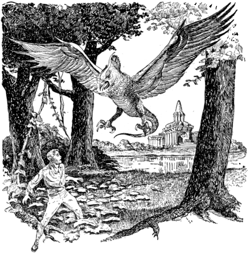There was a rustling sound in the air above him. He looked up, into the blazing sun, and a moment later was crouching in a huddled ball on the ground. The Dragonbird was dropping gently toward him. Elliot remembered only too well what those gleaming talons had done to the sacrificial animal strapped to the altar.