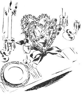 Cut heavy cardboard in heart shape (size wanted). Use 2 for each heart, paste or glue cellophane, either white or red, over cardboard frame, paste 2 together with lace paper frill between. Bend wire to make hearts stand on table.