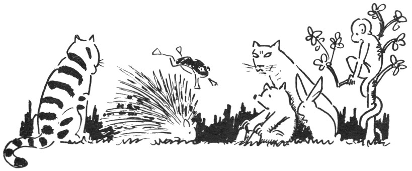 Jadis, dans les réunions d’animaux, le Porc-épic se faisait remarquer par sa joyeuse humeur: il était le boute-en-train de ces petites fêtes; galamment, il priait la Lionne de s’asseoir [p. 28] sur son dos; ou bien il proposait ironiquement au Singe de lui faire la courte échelle; puis il offrait à la Grenouille de faire avec lui une partie de saute-mouton.