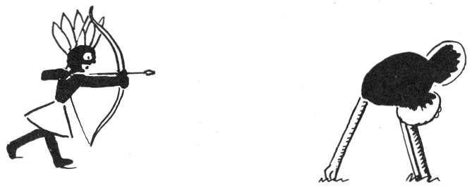 L’Autruche n’est pas brave: lorsqu’elle craint un danger, elle croit se dissimuler en cachant sa tête dans le sable.