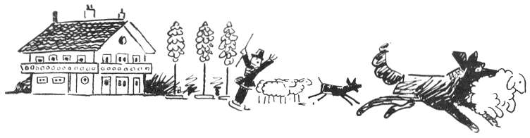 [p. 56] Les Moutons vivent en troupeau; leur maison s’appelle la bergerie. Comme ils sont incapables de se guider et de se défendre contre leur ennemi légendaire le Loup, le troupeau de Moutons, qui s’en va bêlant et broutant sur les chemins, est conduit par un berger et gardé par des Chiens.