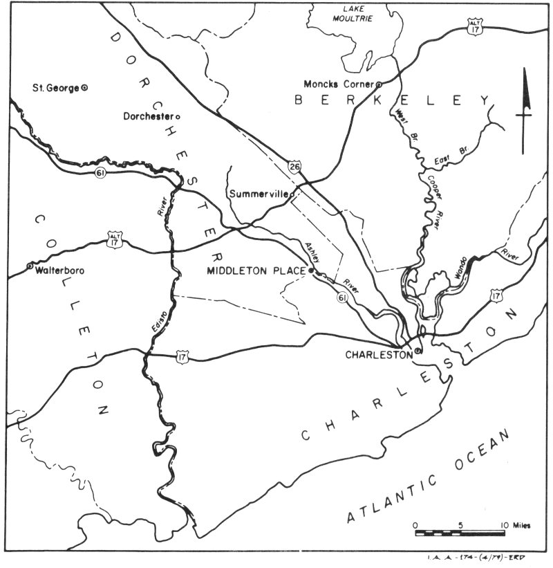 Figure 1. Locator map of Middleton Place, Dorchester County, South Carolina.