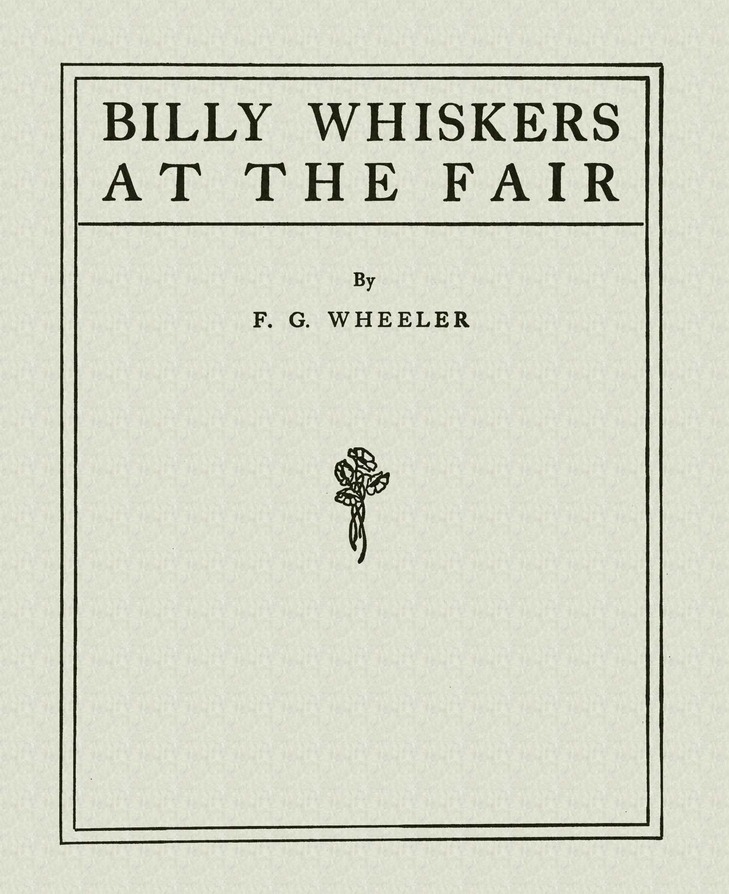 BILLY WHISKERS AT THE FAIR by F. G. Wheeler