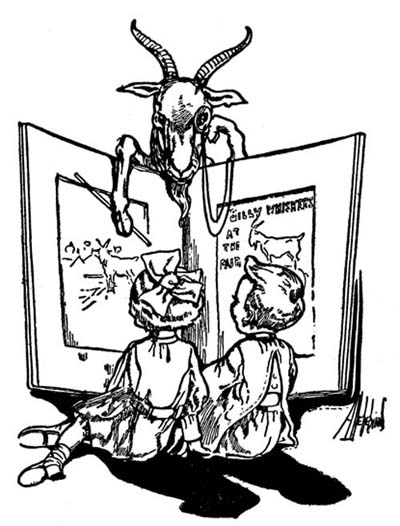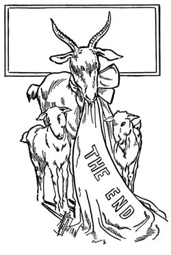 When Mr. Treat allied himself with his sons in this way, their mother usually yielded, and so it happened that Tom and Harry led their purchases to the barn for safe keeping, and Billy introduced the kids as his “twins” to all the barnyard inhabitants. The title clung to them, for they were as like as two peas, and as[163] long as they lived at Cloverleaf Farm they were known far and wide as the “twins.” Years afterwards, when Billy Whiskers was old and feeble, the children of the twins, and his grandchildren by adoption, would clamor for a story, and Billy would relate his adventures at the Fair just as you have read them, and would end by saying: