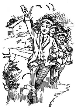 [10]But such a condition of things could not last very long. One fine afternoon when the sun was casting long, slanting rays across the fields, and there was the soft haziness of first October days in the air, Tom, Dick and Harry were passing the Corners on their way home from school when the postmaster, a genial old fellow, hailed them from his seat on a cracker barrel in front of the store.