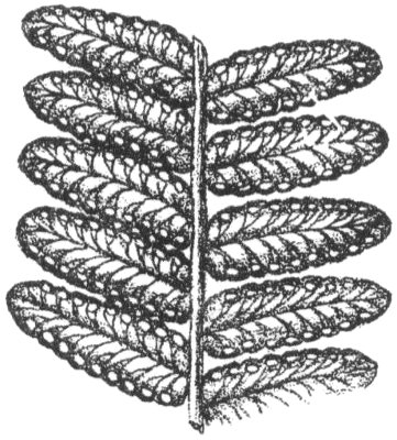 Portion of fern frond showing sori on lower side of leaflets