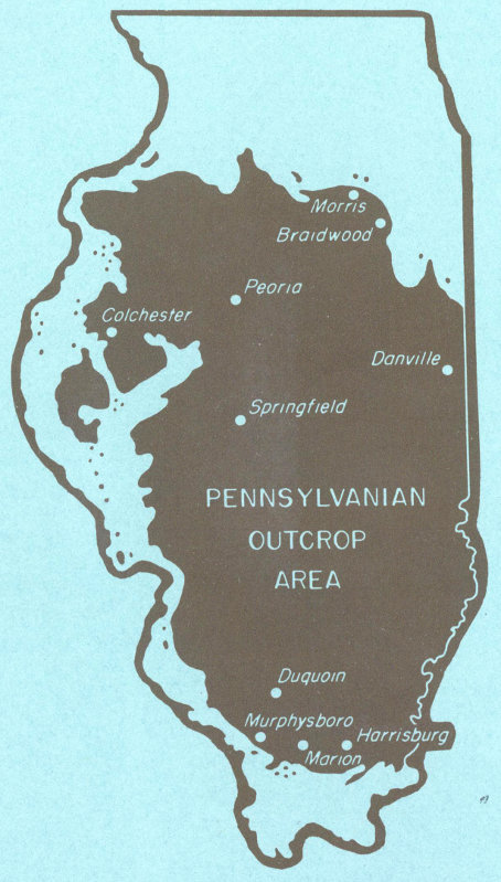 In some of the small underground mines near Colchester, the shale overlying the Colchester (No. 2) Coal contains ironstone concretions similar to those from northeastern Illinois. More than 50 species of plant fossils have been reported, but they were collected many years ago from spoil heaps at the mines. Beds of the same age crop out widely in other localities in western Illinois and may contain plant fossils.
