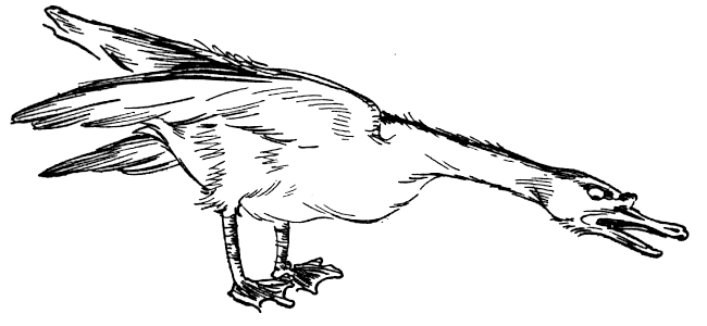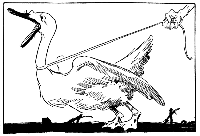 As soon as the slats were removed, the goose thrust its head out of the crate and peered about the kitchen. As he looked at the big white bird, Snip had a feeling that there was something human about him. The old witch-cook made a grab at the bobbing white head.