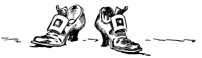 So off ran Sir Hokus and the Scarecrow to carry out the sentence, returning in a few minutes with Mombi's buckled shoes, all that remained of the old Gilliken Witch and her temper. She had been washed out with water, and would never bother anyone in Oz again.