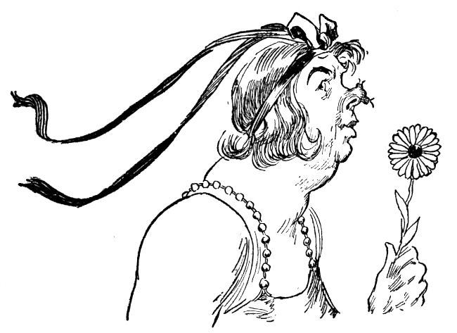 The castle owed much of its coziness to Rosa Merry, the quaint little Queen of Kimbaloo, who kept it spick and spandy and simply blooming with flowers. This she could easily do, for in the castle garden grew a simply enormous bouquet bush, where old and new fashioned bouquets blossomed in bewildering profusion. There were violets and rosebuds edged with lace paper, lovely red roses tied with satin bows, daisies and daffodils, pinks and larkspur, and every other sort of delightful nosegay you could ever imagine. No matter how many were gathered, others immediately blossomed, so that Rosa Merry had made almost as much of a fortune in bouquets as Kinda had in buttons, and could have jelly-roll every lunchtime if she cared to.