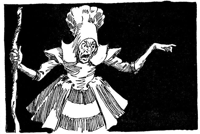 "How can I? How can I?" chattered the witch, wringing her hands. "I've forgotten all my witchcraft. Do you suppose I'd be here as a cook if I had my magic powers, you ridiculous old bird!" Snip could see Pajuka's eyes grow round as buttons at this dismal news.